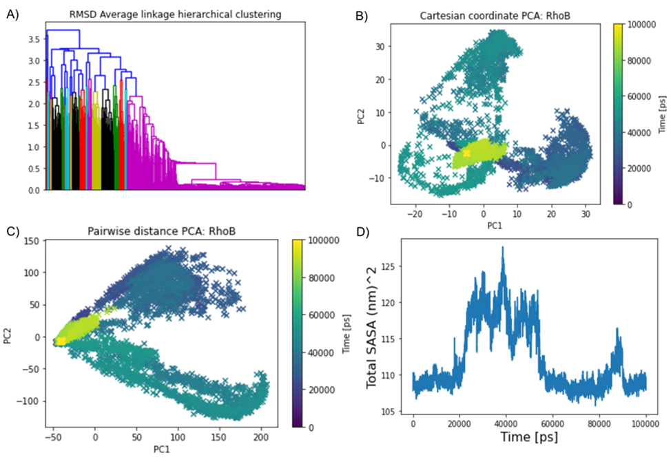 Homology modeling, Molecular dynamics simulation, PCA, RhoB