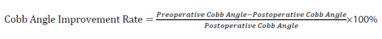 Kyphosis cobb angle of the stenotic segment [7]: The Cobb angle of kyphosis in the stenotic segment is defined as the angle formed by the upper edge of the vertebral body corresponding to the upper edge of the ossified PLL block and the lower edge of the vertebral body corresponding to the lower edge of the ossified PLL block, as shown in Figure 1. The improvement rate of the Cobb angle is calculated as: