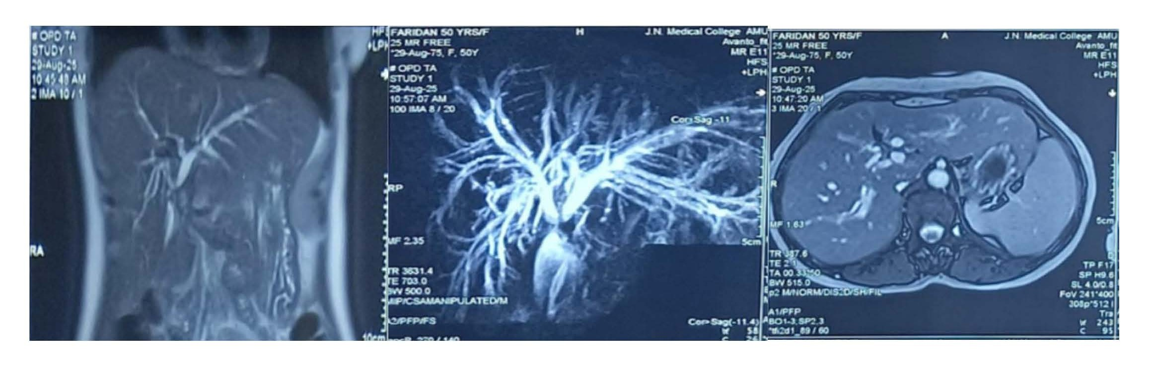 Figure 2. Illustration showing magnetic resonance cholangiopancreatography delineating type E4 biliary structure. a. Coronal T2 weighted,