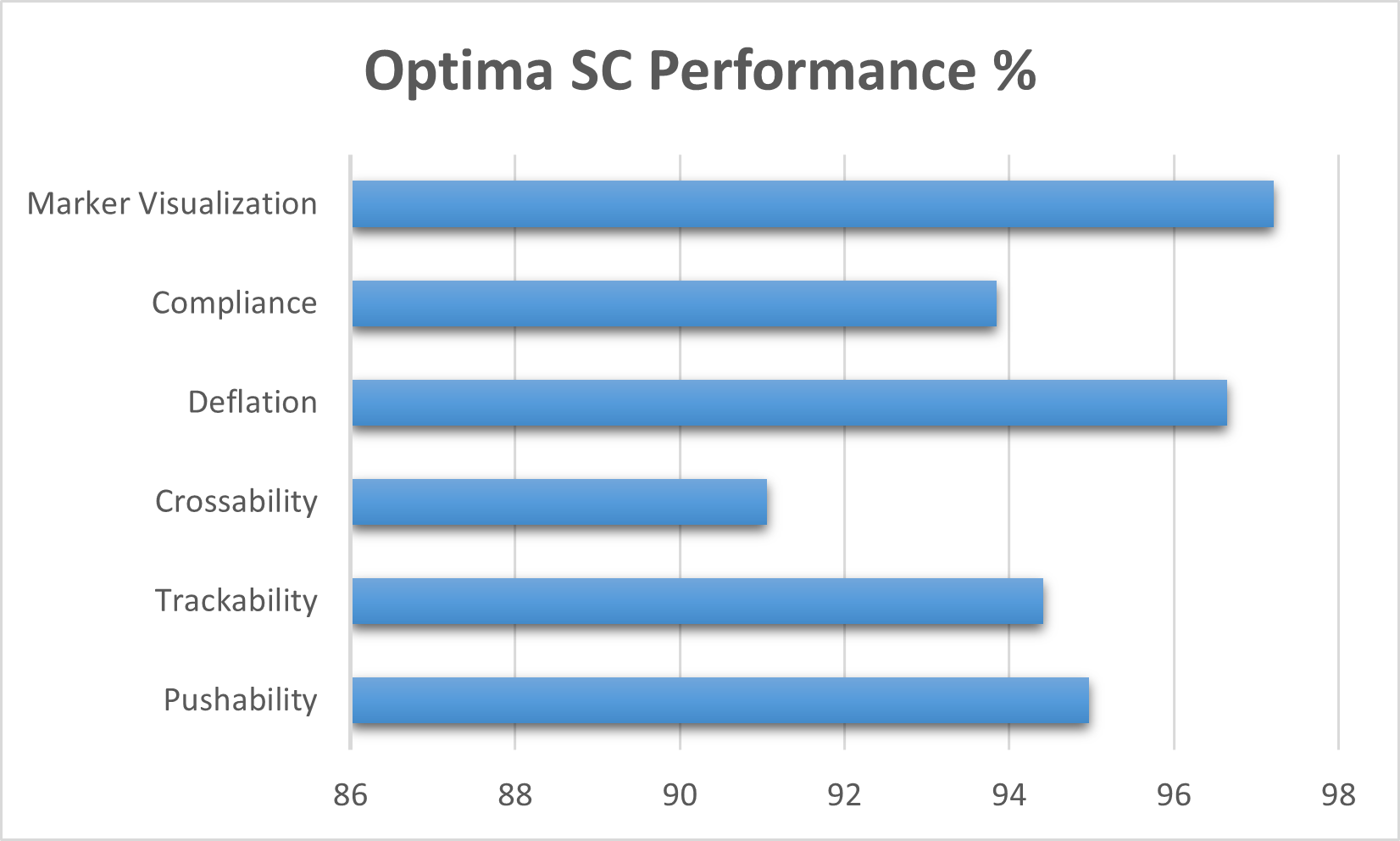 The Optima SC semi-compliant PTCA balloon catheter was used for vessel pre-dilatation in all 183 cases. Devices and procedural success, defined as successful lesion crossing, balloon inflation and deflation, and final achievement of TIMI III flow without major complications, were achieved in 97.8% of cases (n=179). In four patients, the catheter could not be successfully delivered- in one case due to extensive intraluminal thrombus, in two due to severe lesion calcification, and in one case due to marked vessel tortuosity, necessitating procedural modification or deferral. Performance ratings of the device were consistently high. Investigator-assessed balloon attributes such as pushability, trackability, deflation efficiency, and marker visibility were rated above satisfactory in >94% of cases. Other technical parameters, including balloon crossability, and compliance, were also rated above satisfactory in more than 90% of procedures. No procedural difficulties were encountered with balloon inflation, deflation, or withdrawal.