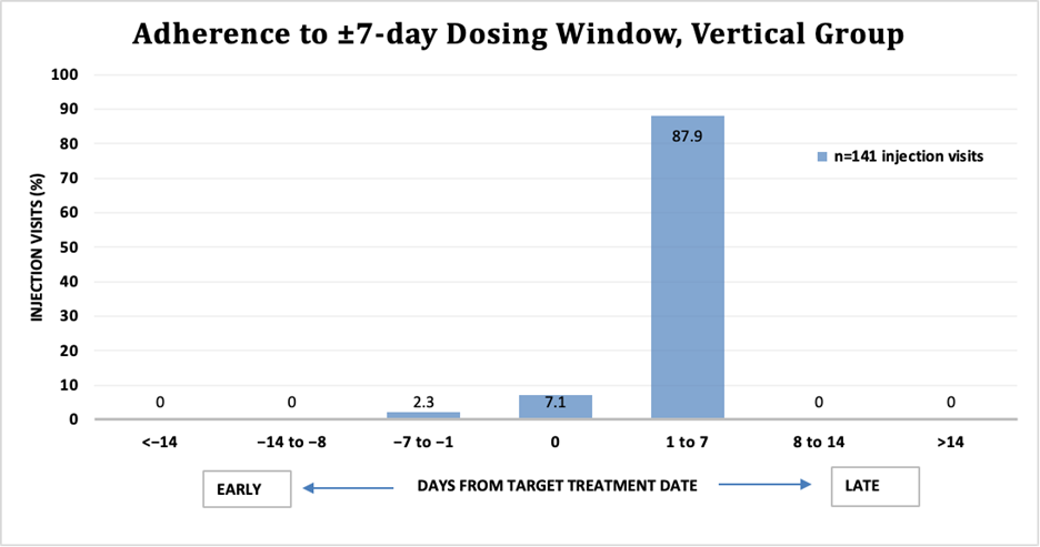 Figure 1. Adherence to ±7-day dosing window, vertical group.