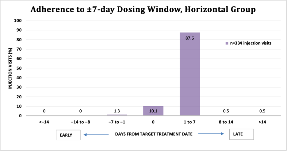 Figure 2. Adherence to ±7-day dosing window, horizontal group.