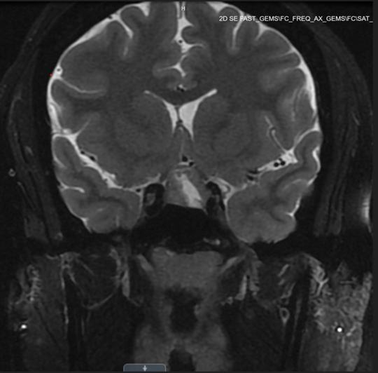 Repeat brain MRI on post-operative day 1 showed postsurgical changes of transsphenoidal resection of the pituitary mass with enhancement along the superior and right lateral margin of the resection cavity measuring a maximum of 5 mm, likely representing residual pituitary neoplasm.