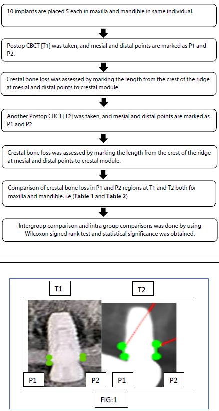 Result: A statistical significant difference was present and the mean crestal bone loss after prosthetic load is higher than preload; higher in maxillary arch when compared to that of mandibular arch in same individual.
