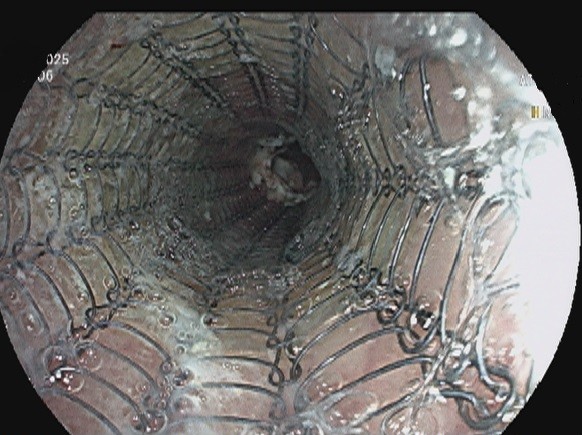 Figure 2. Endoscopic image post esophageal self expanding metal stent (E-SEMS) placement.