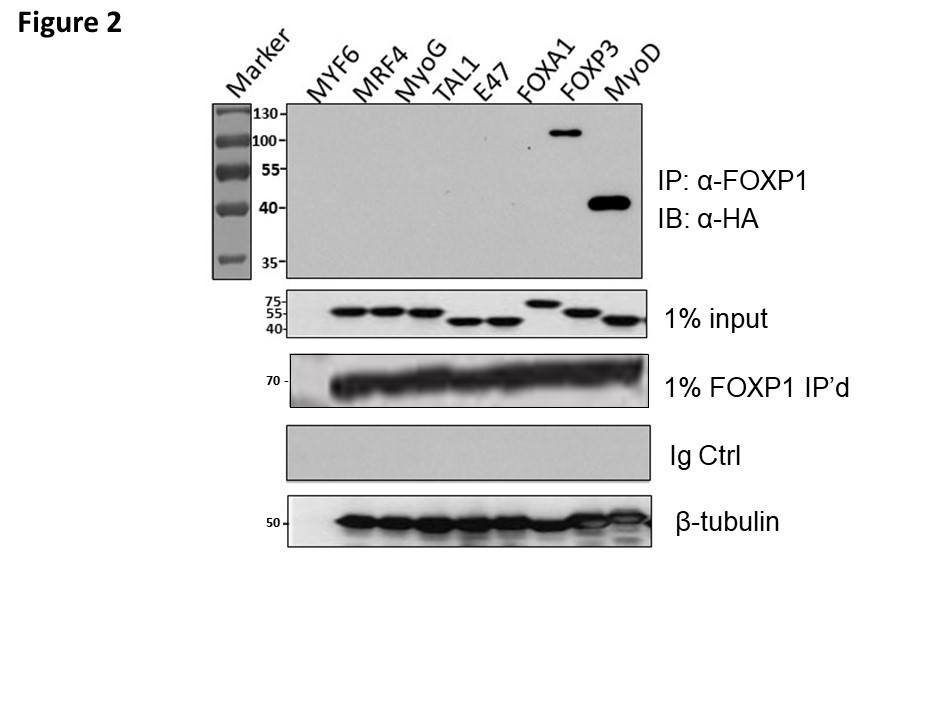 It will be informative to follow these leads with Myod1ChIP experiments to measure the promoter/ enhancers occupancy of FOXP1 and its potential cooccupancy with previously mapped factors shown in Supplementary Figure 1.