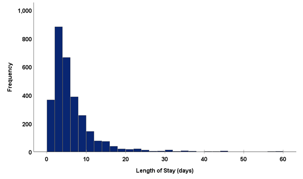 Figure 1. Histogram showing frequency distribution of the LOS variable.
