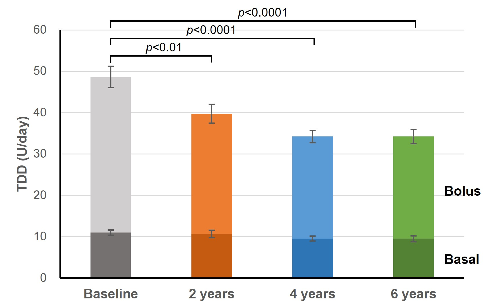 Figure 2. The effect of long-term insulin pump therapy on total daily insulin dose of T2DM.