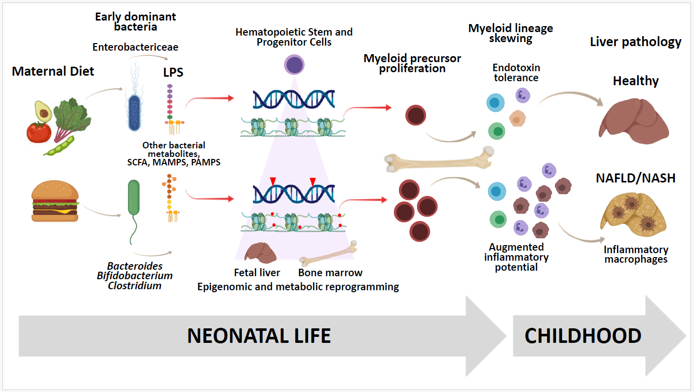 Pediatric NAFLD, Trained immunity, Pioneering bacteria, Microbiome, Epigenetic reprogramming, Hematopoietic stem cells