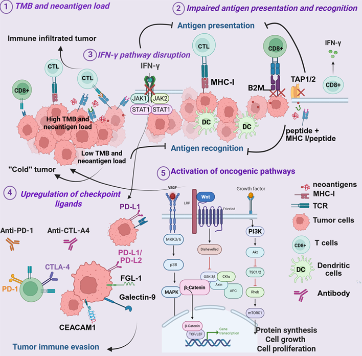 Immune checkpoint inhibitors, Immunotherapy resistance, Melanoma, Head and neck squamous cell carcinoma, Triple-negative breast cancer, Tumor microenvironment, Tumor mutation burden, Neoantigens, Oncogenic pathways, Antigen presentation