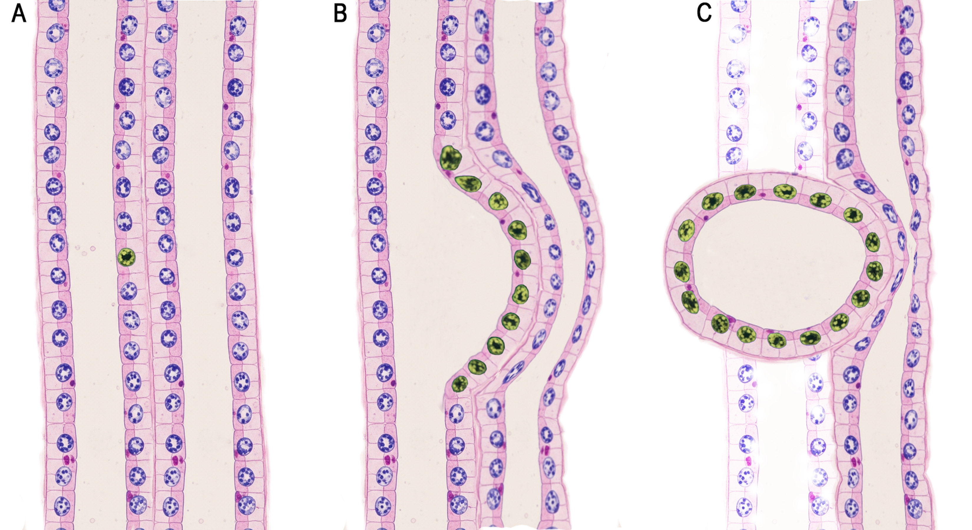 Figure 1. Schematic of clonal expansion and cyst initiation in nephron tubule epithelium. (A) The two-hit hypothesis proposes that cyst expansion is initiated by a single mutated epithelial cell within the nephron tubule. (B) Localized monoclonal proliferation leads to segmental tubule dilation and cyst formation. (C) As the cyst separates from the originating tubule, its continued growth causes mechanical compression of surrounding vasculature, triggering inflammation, fibrosis, hemorrhage, and infection. Cyst expansion contributes to tubular ischemia, obstruction, and epithelial injury, accompanied by the release of proinflammatory mediators and progressive disruption of normal tubular structure, renal architecture, and function.