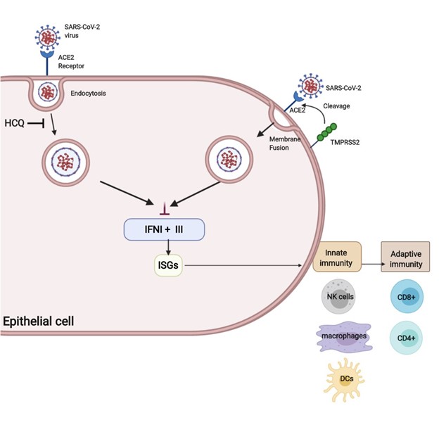 We initially proposed to test the use of IFN α-2b together with HCQ for the prophylaxis of SARS-CoV-2 [3]. HCQ is known to inhibit endocytosis that is important for the viral entry into the cell [4]. In this review, we will review the current understanding about type I IFNs (IFN Is) and type III IFNs (IFN IIIs) in the pathogenesis of COVID-19 and summarize the current clinical data on the use of HCQ and IFNs for COVID-19.