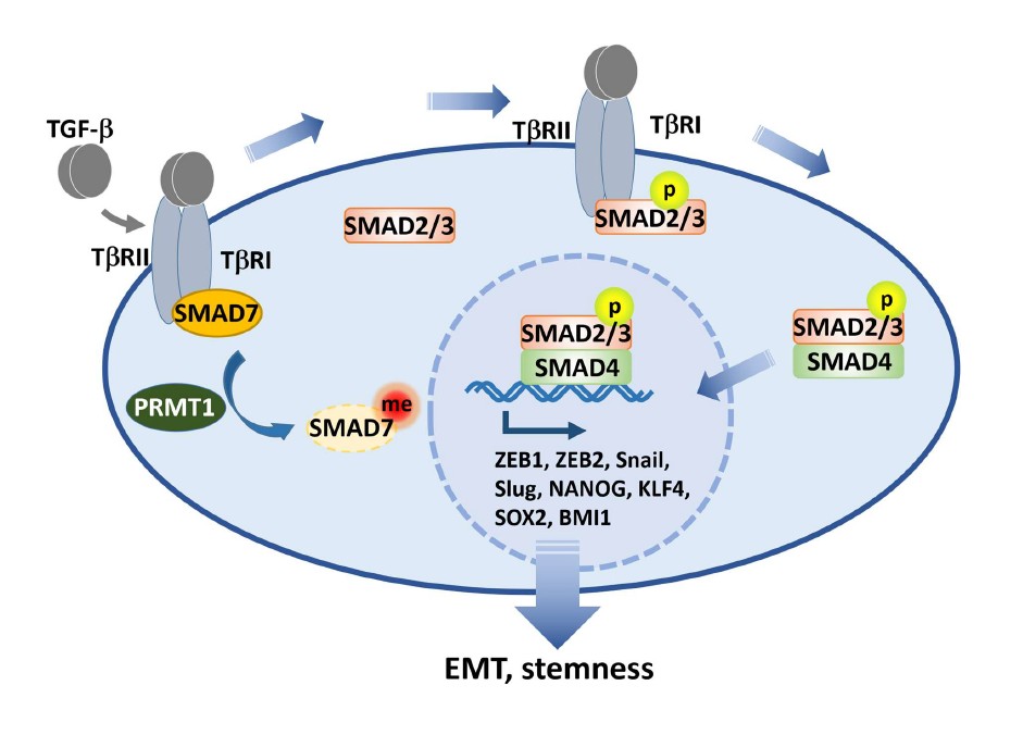 Arginine methylation, PRMT1, SMAD7, TGFβ, EMT, Stemness