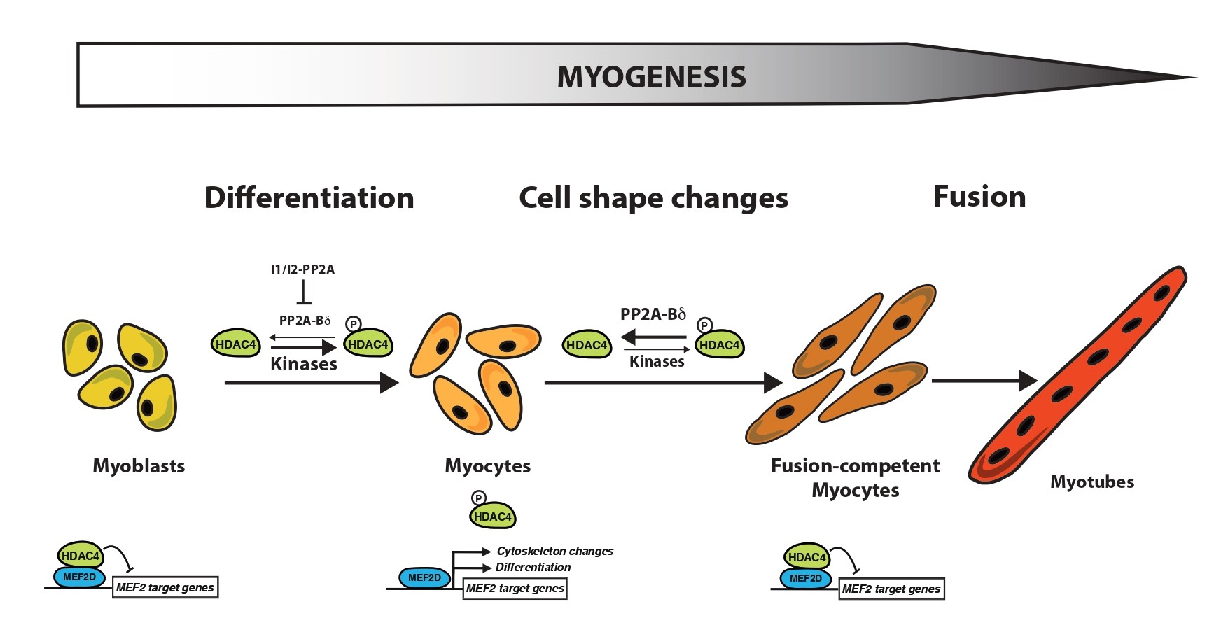 4. Veloso A, Martin M, Bruyr J, O’Grady T, Deroanne C, Mottet D, et al. Dephosphorylation of HDAC4 by PP2A-Bd unravels a new role for the HDAC4/MEF2 axis in myoblast fusion. Cell Death Dis. 2019 Jul 4;10(7):512.