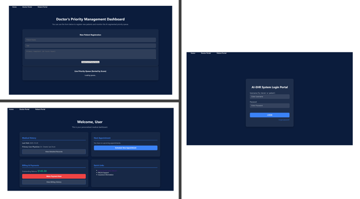 Electronic Health Record (EHR) systems have become a cornerstone of modern healthcare, enabling the digital storage, retrieval, and exchange of patient information across clinical environments. Global adoption of EHRs has accelerated over the past decade, driven by advancements in digital health, data interoperability, cloud computing, and AI-enabled decision support [1–3]. These technologies have improved care coordination, reduced documentation burdens, and supported population-level analytics. However, despite these developments, EHR systems continue to face persistent challenges, including data overload, inefficient patient triage, limited automation, and inconsistent integration of intelligent tools for real-time clinical decision-making.