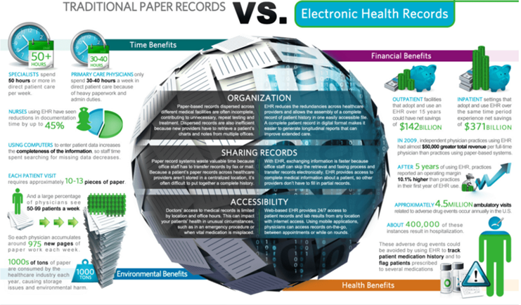 Historically, EHRs were developed to replace traditional paper-based documentation, providing an accurate and longitudinal record of patient health across multiple encounters. This transition reduced data redundancy, simplified information retrieval, and improved the efficiency of clinical workflows. Closely related to EHRs are Electronic Medical Records (EMRs) digital files maintained by healthcare providers for specific patient interactions and Personal Health Records (PHRs), which are managed directly by individuals to document personal medical data for consultation purposes. Although distinctions between these systems remain, their collective adoption has accelerated population-based medical research and streamlined the analysis of health trends [12–22].