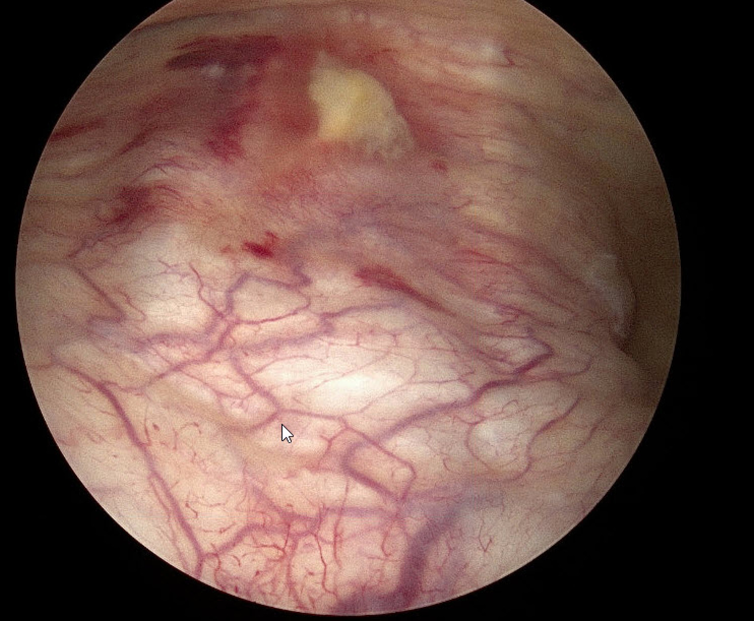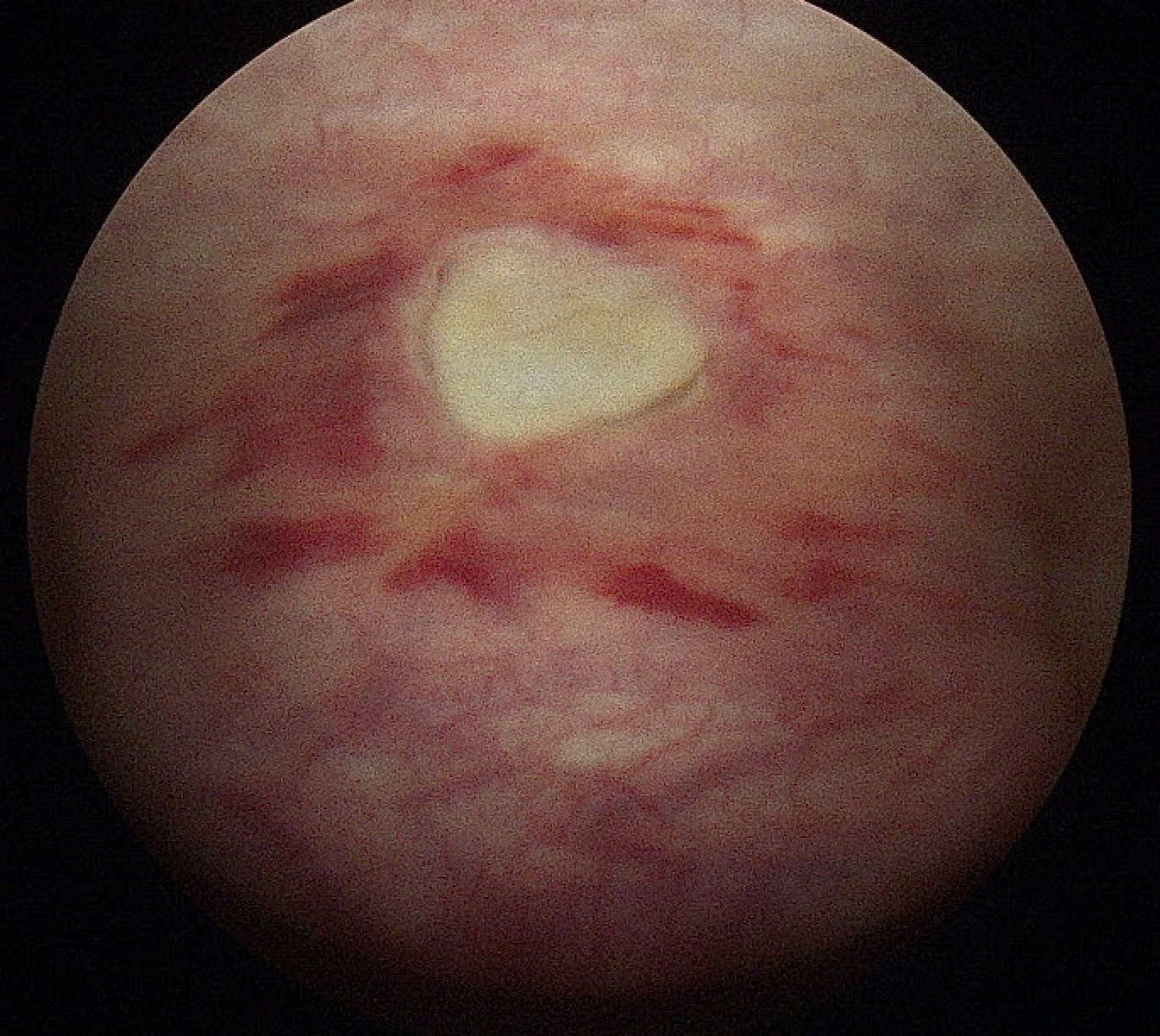 Figure 1. Thermal bladder injury sustained during cystoscopy on the 17th day postoperative.